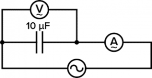 Таким чином, якщо конденсатор невідомої ємності (С) включити в коло змінного струму відомої невеликої частоти (ν = 50Гц), і виміряти силу струму (~І) в колі та падіння напруги (~U) на конденсаторі, то ємність конденсатора можна визначити із співвідношення ~U/~I = 1/2πνC, тобто за формулою С = (~І)/2πν(~U).