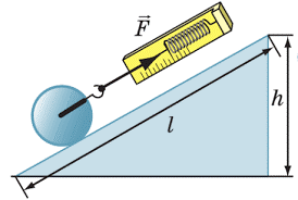 - Визначаємо ККД похилої площини: η = Акор/Азаг, де Акор = m·g·h; Азаг = Fтяги·ℓ