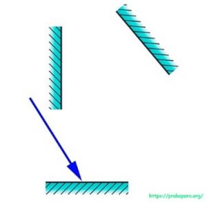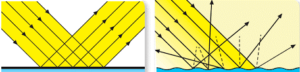Мал.57. При відбиванні, світло веде себе як потік пружних кульок, які відбиваються від рівної твердої поверхні.