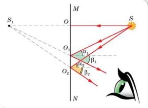 - Відстань від точкового джерела світла силою J, до екрану дорівнює ℓ. Як зміниться освітленість центру екрану, якщо з другої сторони джерела, на відстані ℓ від нього паралельно екрану поставити плоске дзеркало?