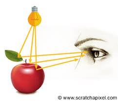 Мал.206. Освітленість поверхні обернено пропорційна квадрату відстані до джерела світла.
